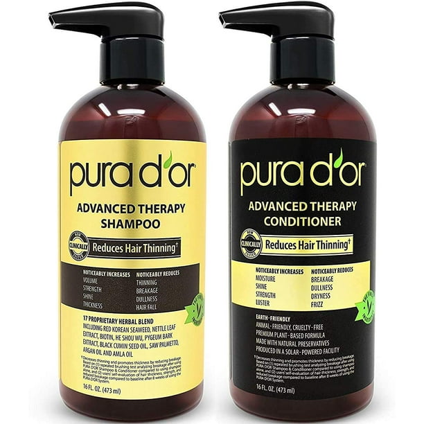 Pura D Or Advanced Therapy System Shampoo Conditioner Increases Volume Strength And Shine No Sulfates Made With Argan Oil All Hair Types Men Women 16 Fl Oz Packaging May Vary